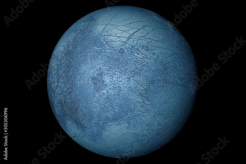 © Artsiom P, Fototapeta premium Satellite of Jupiter, Europe. On a black background. Elements of this image furnished by NASA
