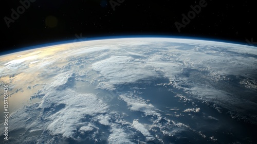 Obraz premium Satellite orbiting Earth, with the curvature of the planet and the vastness...