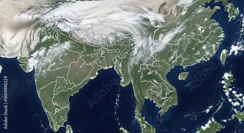 Obraz premium Satellite View of Asia Showing Weather Systems Over South Asia