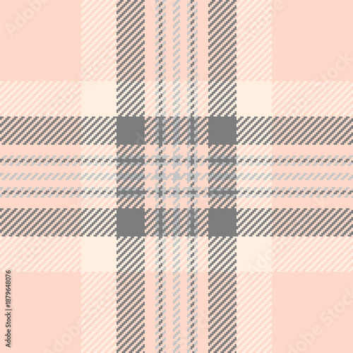 Fototapeta premium Satin seamless check texture, striped tartan pattern background. Commercial plaid textile fabric vector in light and gray colors.