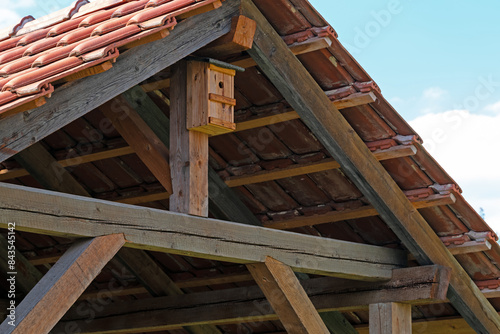 © M. Schuppich, Fototapeta premium Satteldach mit Querbalken und Dachziegeln