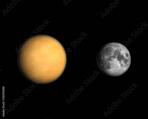 © Tristan3D, Naklejka premium Saturn Moon Titan and the Earth Moon