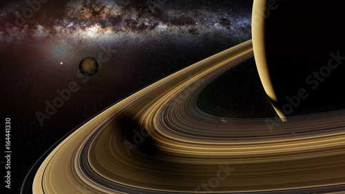 Naklejka premium Saturn's moon Enceladus casts a long shadow on planet Saturn's rings