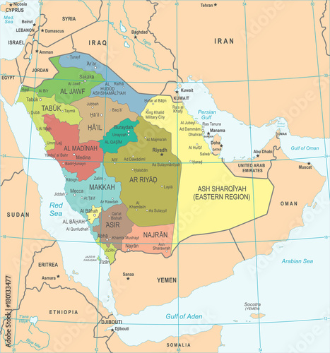 © Porcupen, Obraz premium Saudi Arabia Map - Detailed Vector Illustration