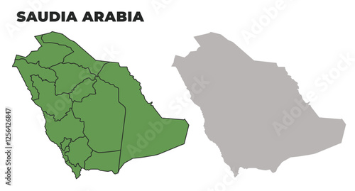© Abdul, Obraz premium Saudi Arabia political regions green outline map set