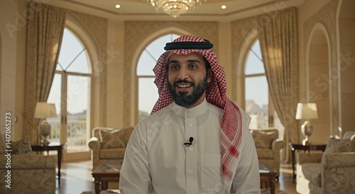 Naklejka premium Saudi Arabian Man in Luxurious Interior