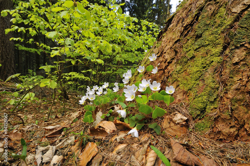 © Karin Jähne, Obraz premium Sauerklee an einem Baumstamm.
