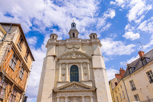 Fototapeta premium Saumur, France, located at the Loire river under a beautiful cloudscape during daytime.