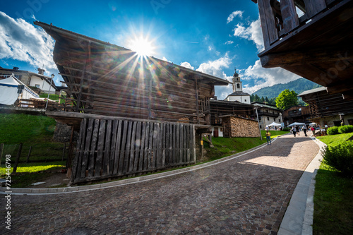 Obraz premium Sauris, pearl of Carnia. Ancient village with wooden and stone houses.