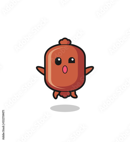 © heriyusuf, Obraz premium sausage character is jumping gesture