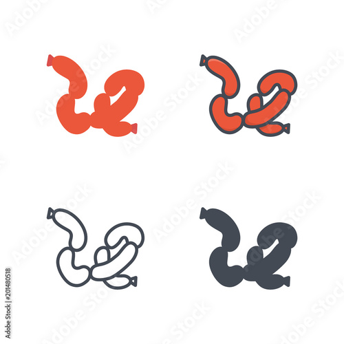 Obraz premium Sausage meat food icon vector flat solid silhouette line