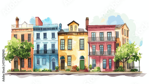 © Aquir, Fototapeta premium Savannah Historic District. Savannah Historic District hand drawn watercolor illustration