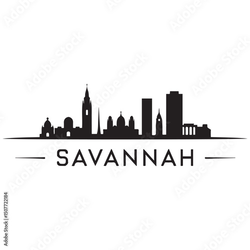 © firoz, Fototapeta premium Savannah skyline horizontal banner. Black Savannah, Georgia. Vector template for your design. Vector black silhouette. with white background