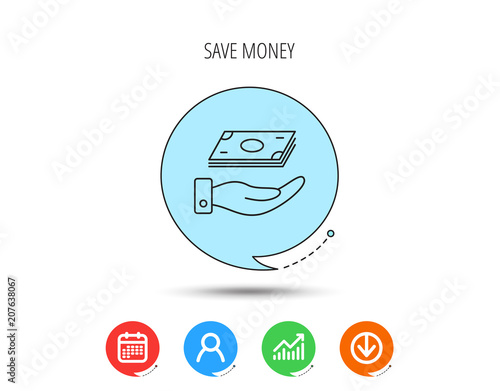 © tanyastock, Naklejka premium Save money icon. Hand with cash sign.