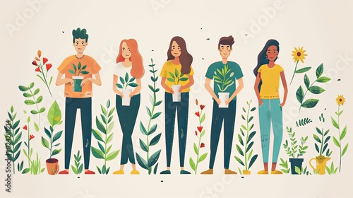 Obraz premium Save planet people poster. Men and women watering plants and picking up...