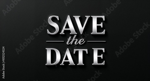 © Erlinda, Obraz premium save the date silver shining shiny solid metallic lettering on plain black background