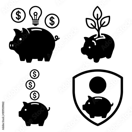 Obraz premium Savings Finance Piggy bank Vector abstract shapes logo design elements
