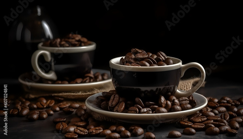 © Sheepy-Kun, Fototapeta premium Savor the indulgence of rich coffee as it fills a cup, accompanied by the delightful aroma of freshly roasted beans. ☕️