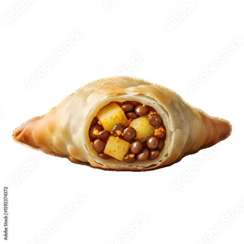 © sumarno, Naklejka premium Savory lentil and potato pastry samosa.