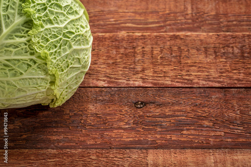 © MarekPhotoDesign.com, Fototapeta premium savoy cabbage on rustic wood