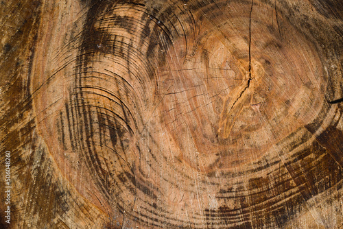 © alan, Naklejka premium saw cut texture with annual rings and cracks.