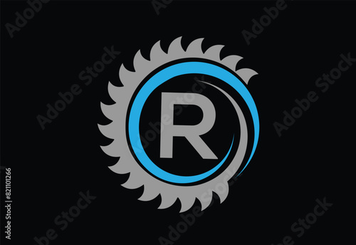 Naklejka premium Sawmill emblem logo vector for carpentry,with latter R