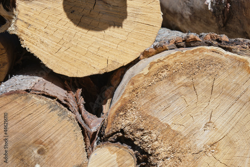 © Natasha, Naklejka premium sawn trees, logs for sawing for firewood