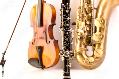 Fototapeta premium Sax tenor saxophone violin and clarinet in white