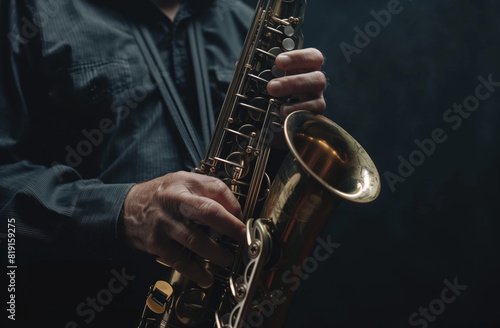 © siripimon2525, Fototapeta premium saxophonist's hands playing the saxophone