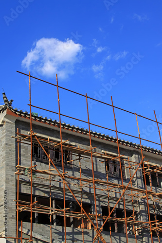 © zhang yongxin, Obraz premium scaffolding and unfinished antique building