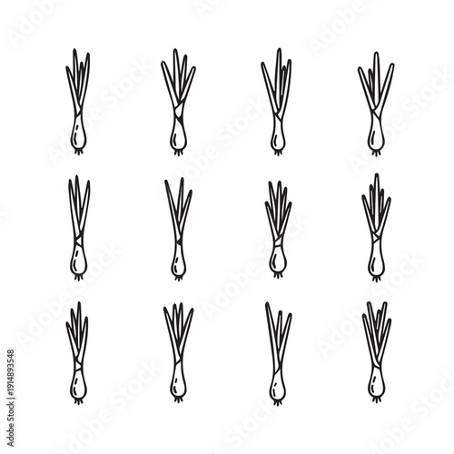 Obraz premium Scallion illustrations, pattern, white background, minimalist, hand-drawn style