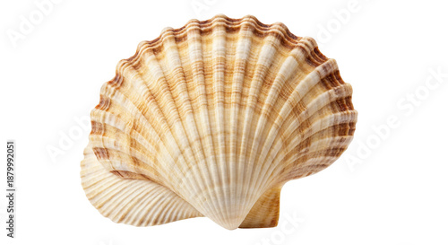 © RomenaJannat, Obraz premium Scallop seashell with brown and white stripes on transparent background
