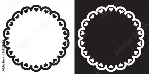© Rama, Obraz premium Scalloped circle frame icons. Round scalloped frame. Scalloped circle shape and frame sticker with border on white background. vector illustration.