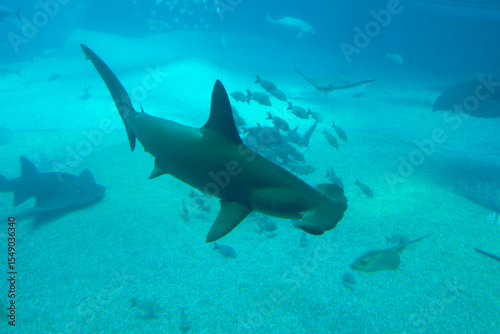 Obraz premium Scalloped hammerhead (Sphyrna lewini) under water
