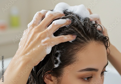 © Luxe Beauty Studio, Naklejka premium Scalp Massage While Shampooing