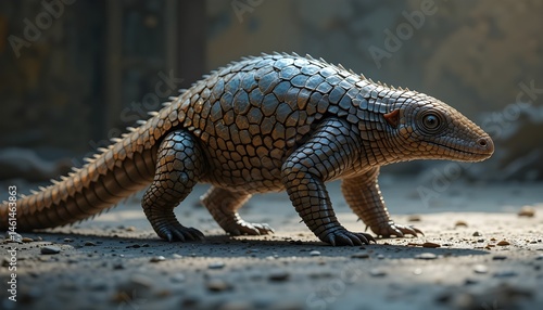 © Zeeshan, Obraz premium Scaly Pangolin Walking on a Dusty Surface