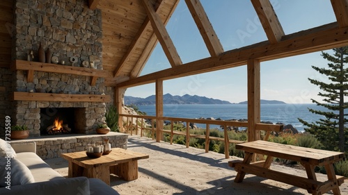 © Halloway, Obraz premium Scandinavian A-Frame Mountain House