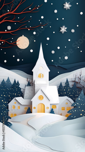 Fototapeta premium Scandinavian folk christmas 3d vector papercut