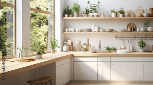 Fototapeta premium scandinavian kitchen with white cabinets