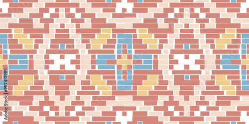 Fototapeta premium Scandinavian Korean Traditional Pattern Backgroundfolk Embroidery, Aztec...