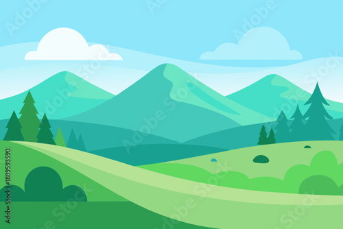 © Chamok Chandra, Fototapeta premium Scandinavian Minimal Landscape Flat Vector Illustration