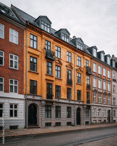 © Tim Kerkmann, Fototapeta premium Scandinavian Row Houses with Large Windows Minimalist Design