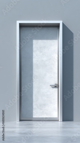 © Waqar, Naklejka premium scandinavian steel door with textured glazing, thin frame, polished edges with realistic shadows.