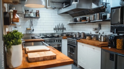 Fototapeta premium Scandinavian-style kitchen with white cabinets, wooden countertops, and cozy...