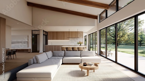 Fototapeta premium Scandinavian style living room furniture showcase modern home interior design bright environment wide angle view
