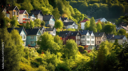 Fototapeta premium Scandinavian-style suburban houses village, that breaks away from the...
