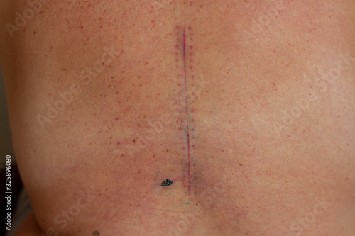 Fototapeta premium scar on the spine of a person from surgery