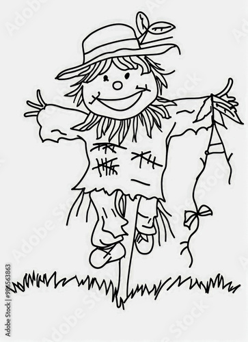 © Agustin, Fototapeta premium Scarecrow line drawing for coloring