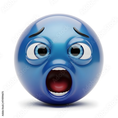 © Muhammad Wasiq , Fototapeta premium Scared blue emoji isolated on white background with its mouth open in fear
