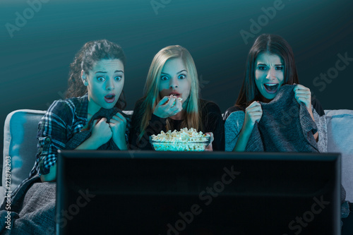 © ikostudio, Naklejka premium Scared teenage watching movies